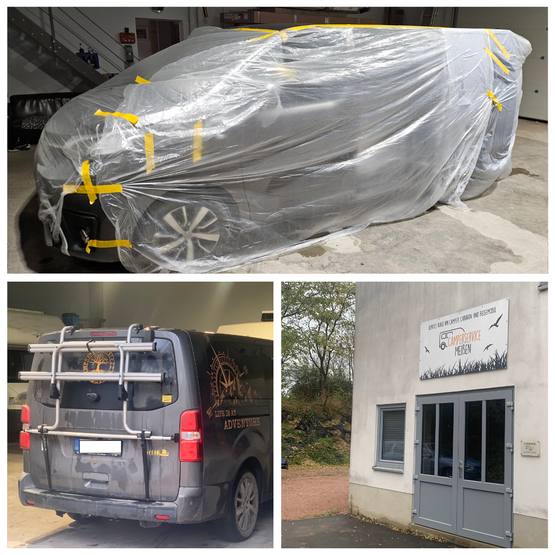 Nach einer etwas abenteuerlichen Fahrt über eine Traktorenteststrecke 🚜, Apple hatte mir aufgrund Staus auf der A4 eine alternative Route vorgeschlagen, habe ich dann doch ein zeitliche Punktladung hinbekommen. Herr Kunert vom Camper Service Meißen nahm den Anblick meines matschverschmierten Busses sportlich, mir war es schon etwas peinlich.